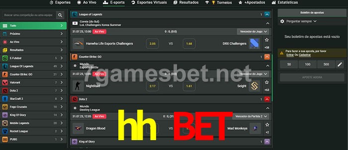 O hh bet oferece uma grande seleção de opções de apostas em e-sports com probabilidades competitivas